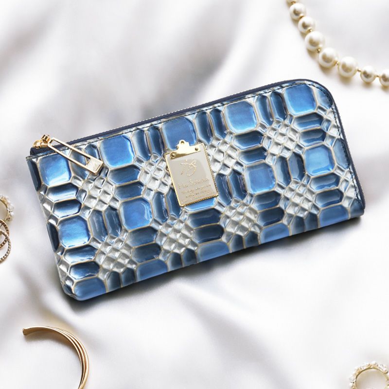 精巧な宝飾品のように綺麗な青のエナメル財布「スイスブルー」