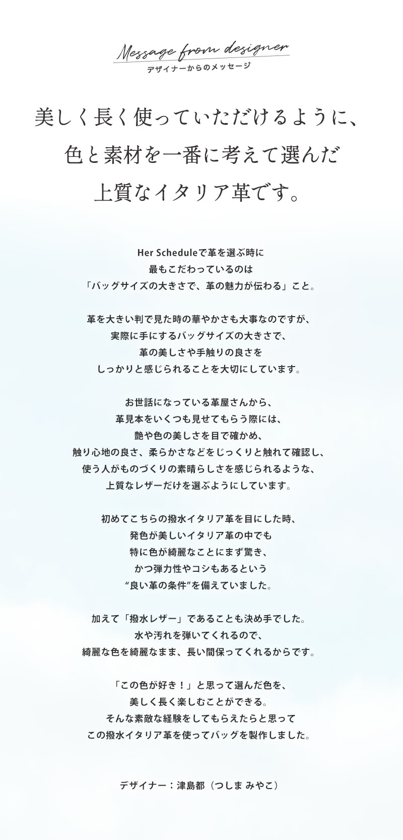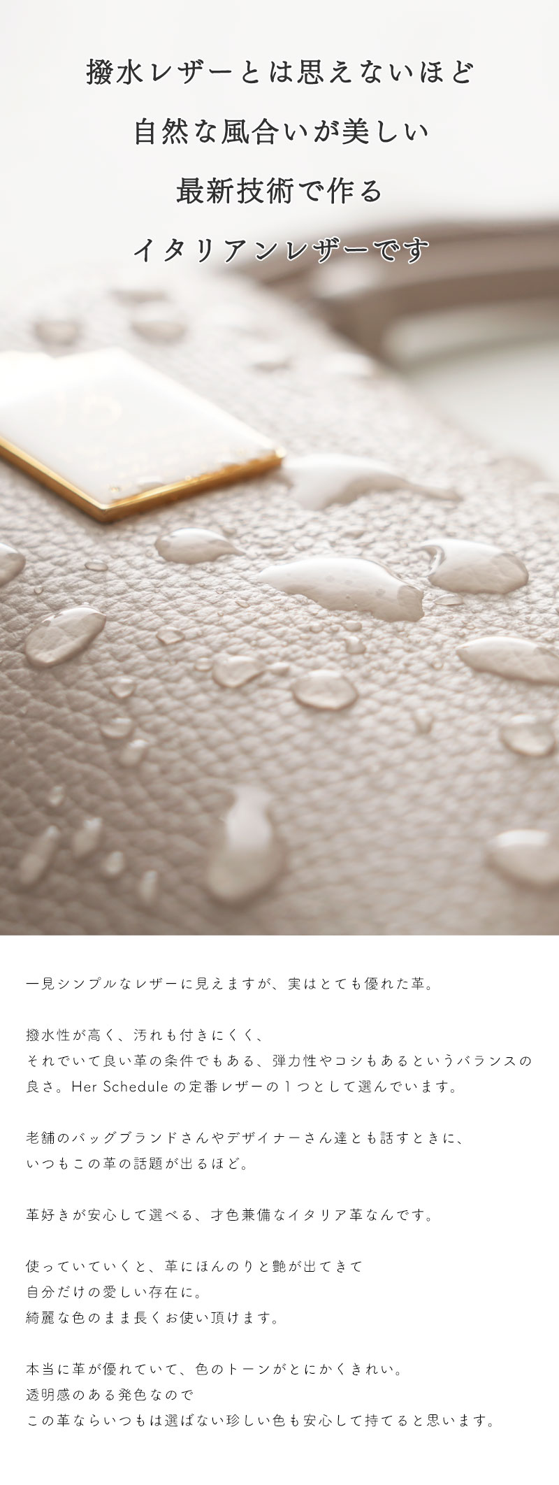 こちらのバッグはイタリアで珍しい色に染めた特別なレザーを