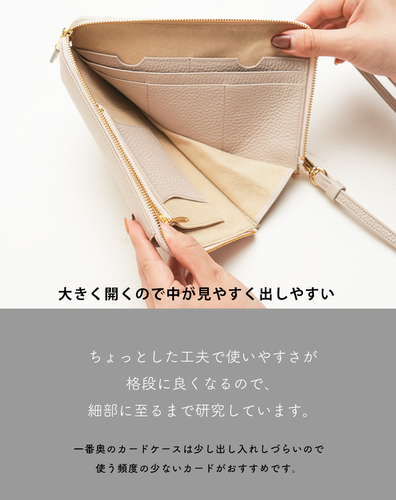 ■サイズ 横:約12cm 縦:約19cm 厚み:約2cm(タック部分含む)約15cm(底部分) *ショルダーベルトの長さ:無段階調節可能 *サイズは外寸です ■重さ 245g ■素材 外装:牛革 内装:牛革 スウェード調の布帛 ■モデル身長:161cm |
