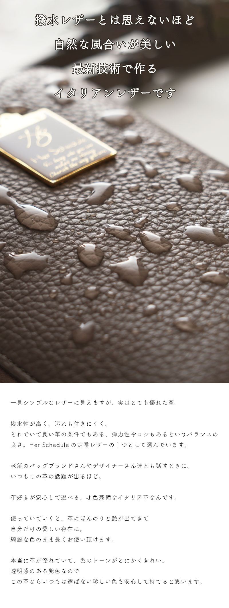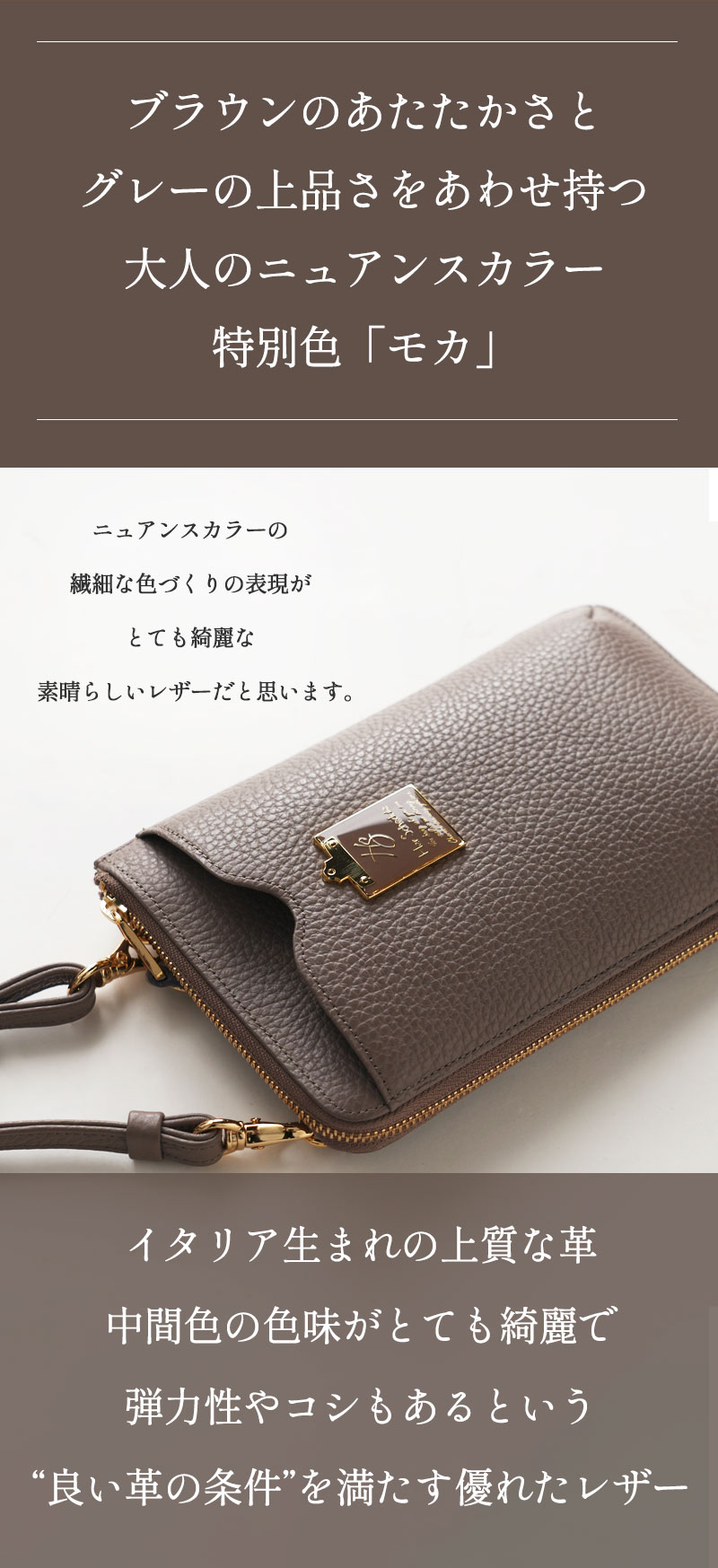 こちらのバッグはイタリアで珍しい色に染めた特別なレザーを