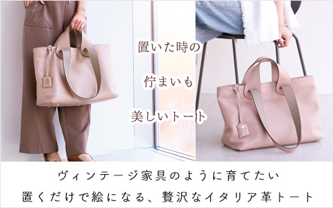 こちらのバッグはイタリアで珍しい色に染めた特別なレザーを