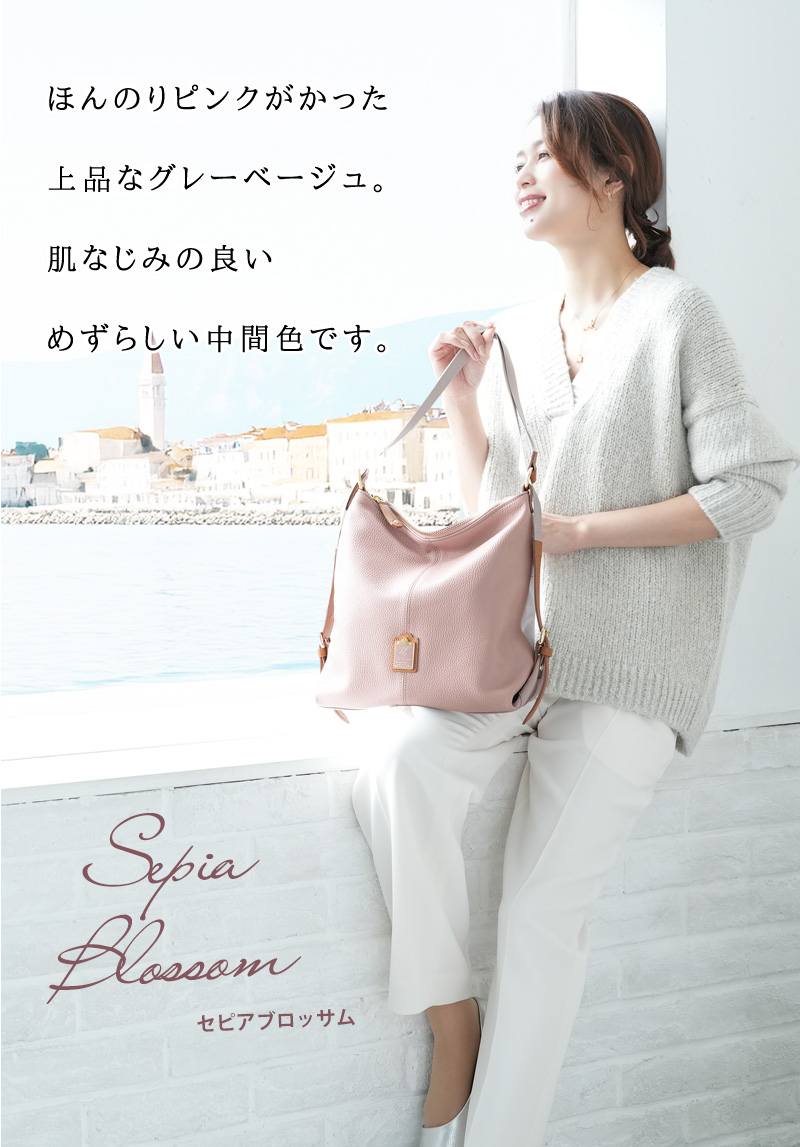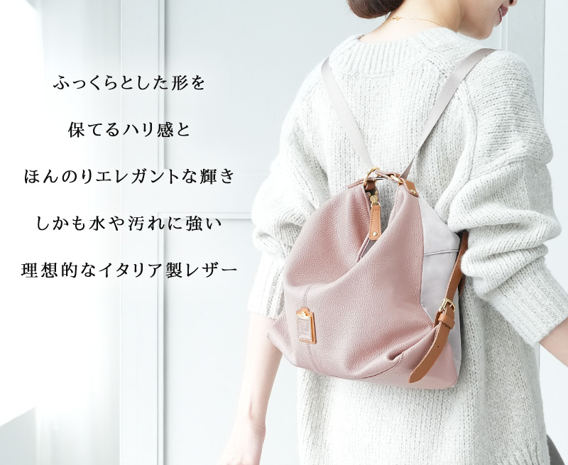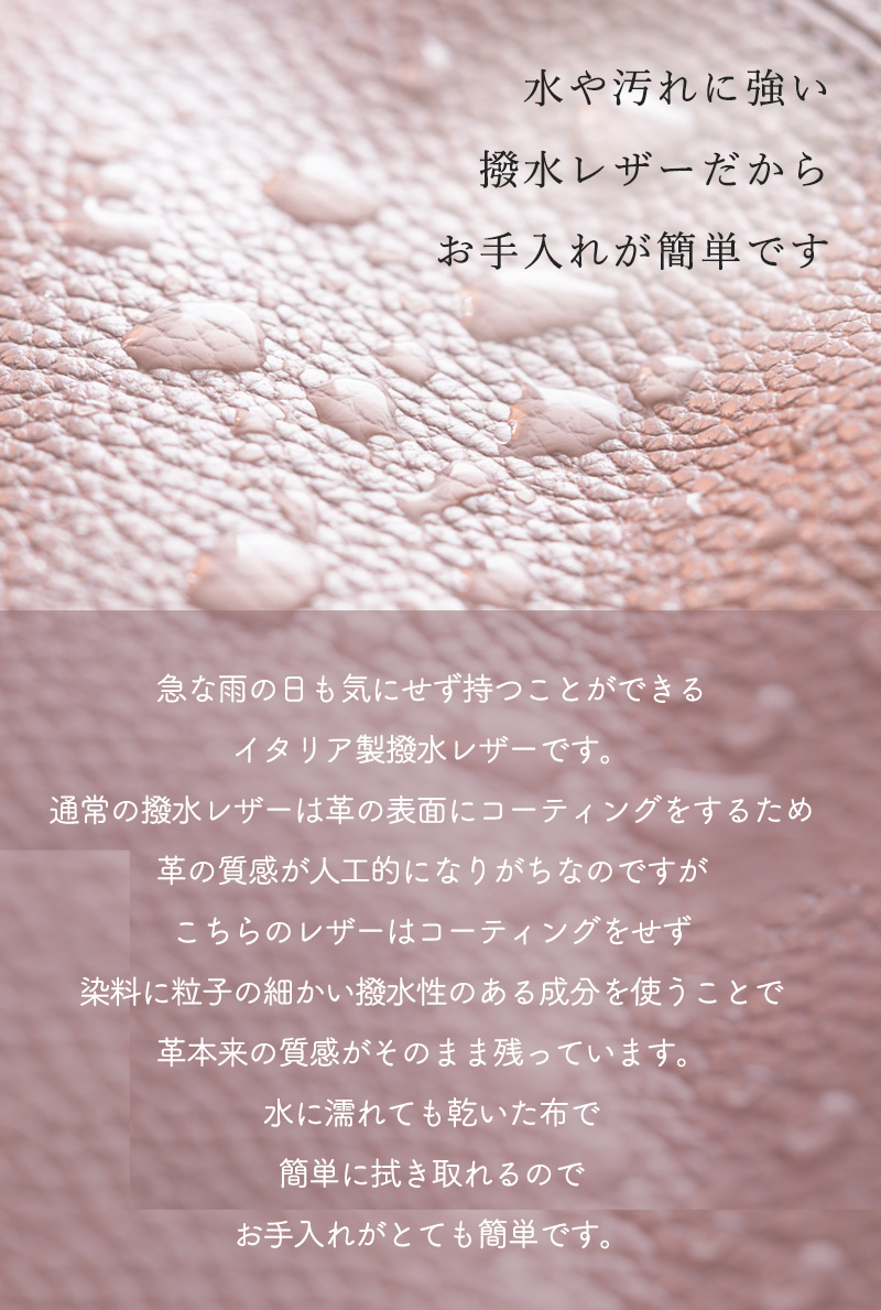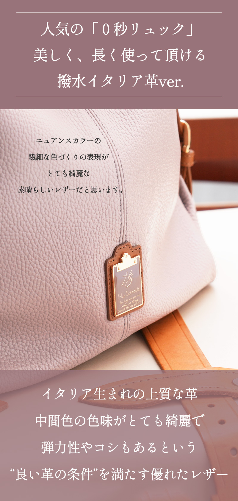 こちらのバッグはイタリアで珍しい色に染めた特別なレザーを