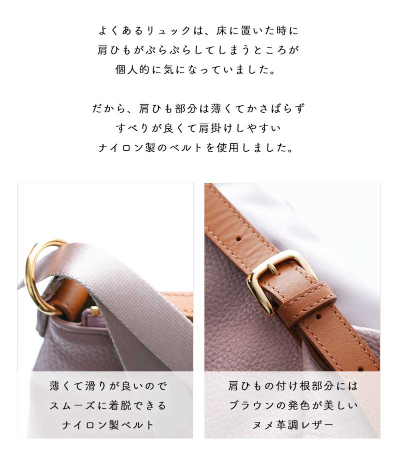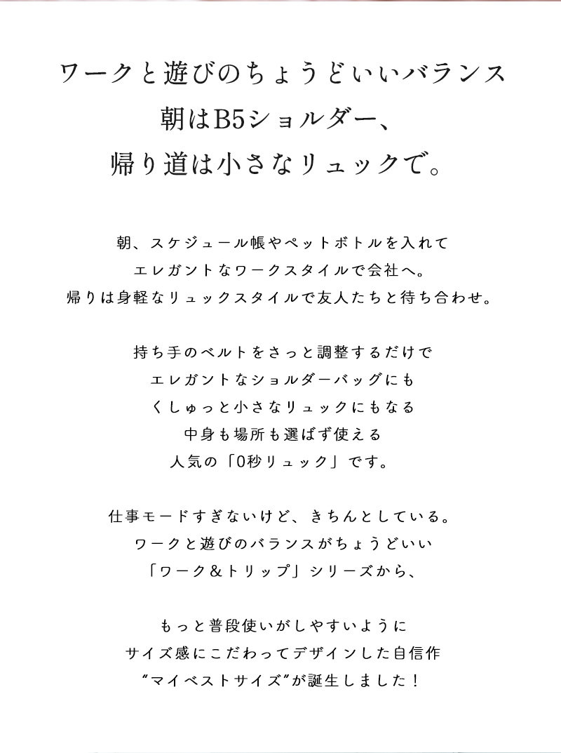 ■サイズ 横:約30cm~28cm(底辺~上辺部分) 縦:約27cm 厚み:約11cm *サイズは外寸です ■重さ 510g ■素材 外装:イタリア製牛革(撥水レザー)&ナイロン(撥水) ベルト部分:ナイロンテープ&ヌメ調レザー 内装:スウェード調の生地 |