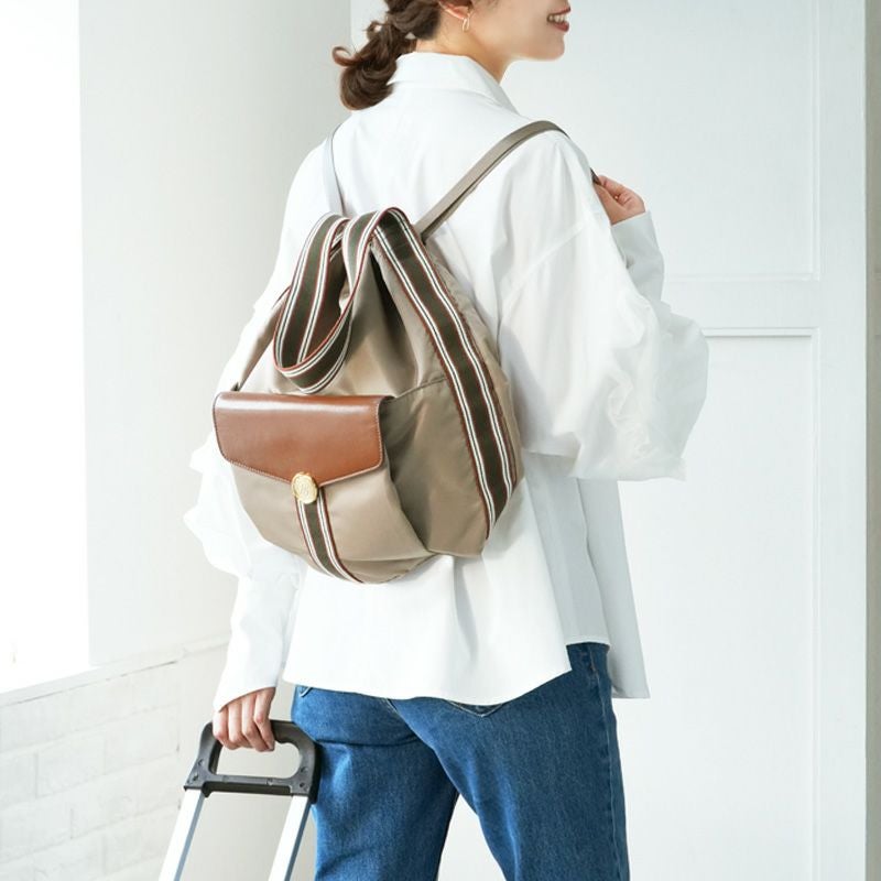 【HerSchedule】カーキ好きに持って欲しい限定色トレンチベージュ! “羽織る”新感覚の「フェザーリュック」カーディガンの心地よさや軽やかさから着想を得た、リュックにもトートにもなる2wayバッグ FeatherRuck 撥水ナイロン チョコレートライン 美色カーキ(ハースケジュール)