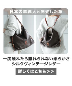 こちらのバッグはイタリアで珍しい色に染めた特別なレザーを