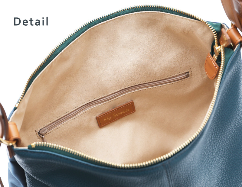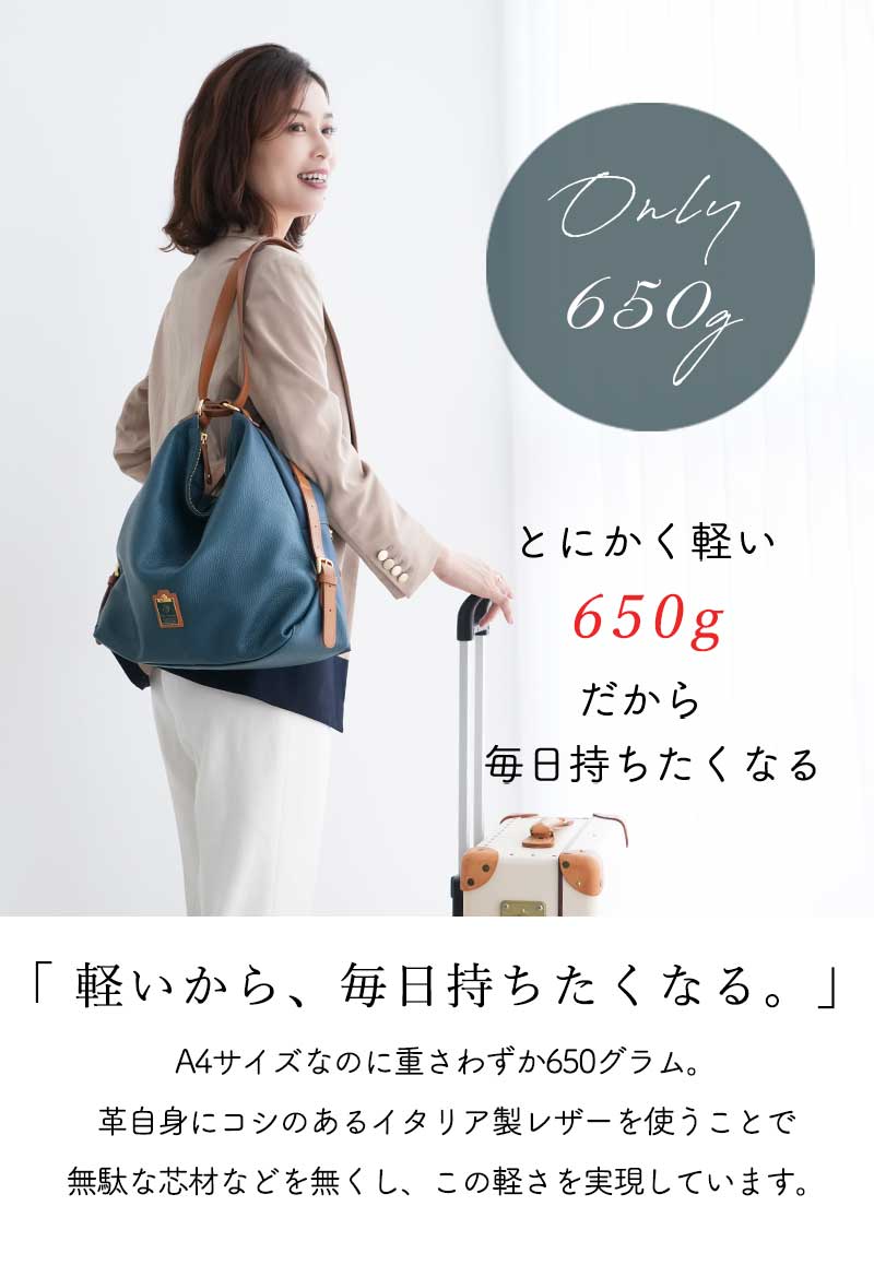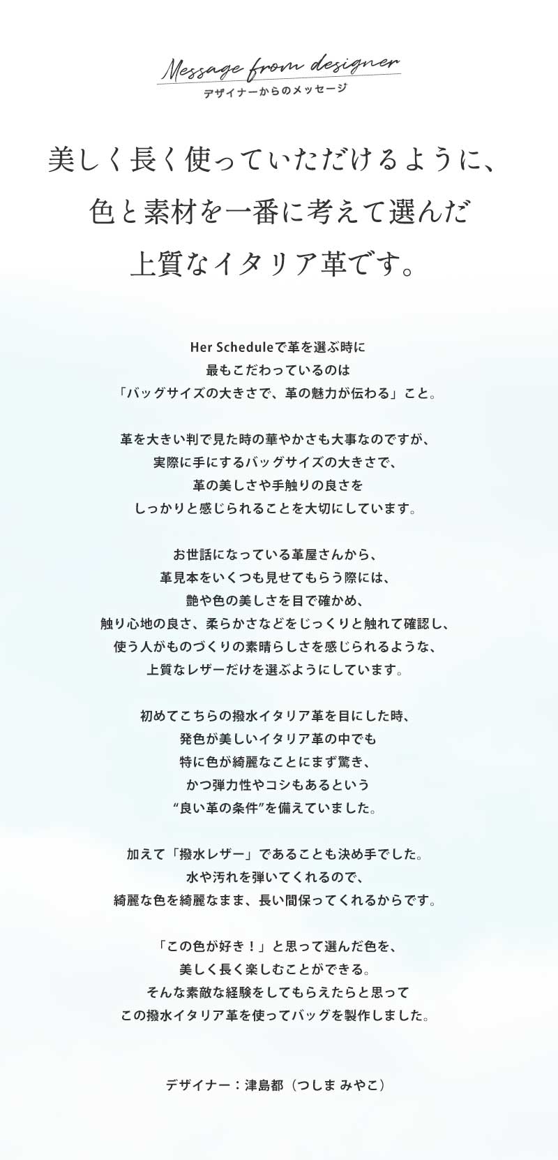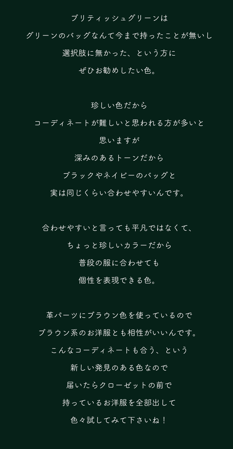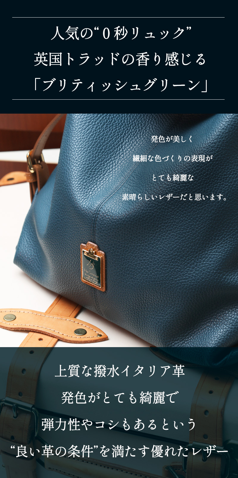 こちらのバッグはイタリアで珍しい色に染めた特別なレザーを