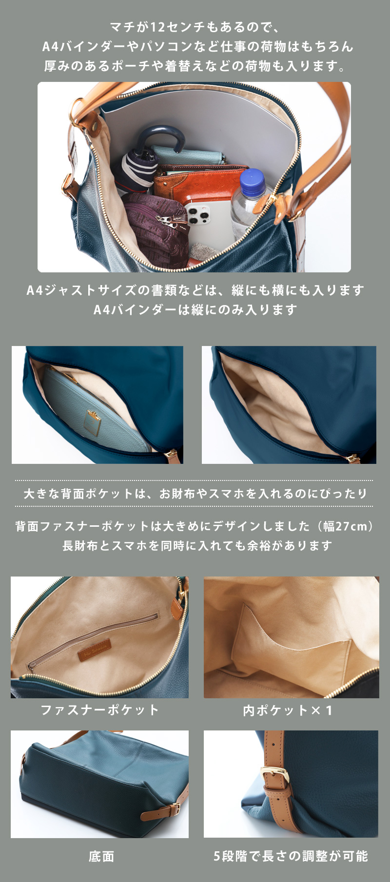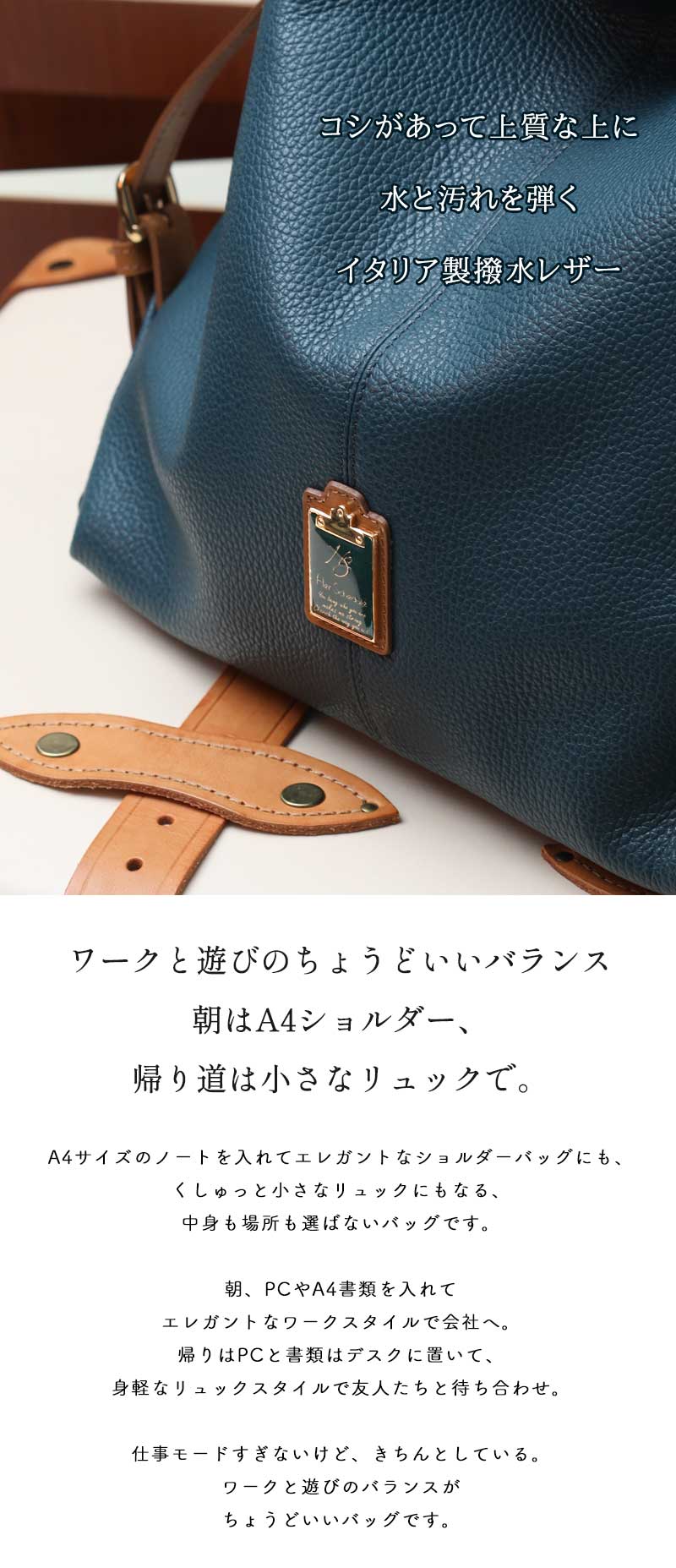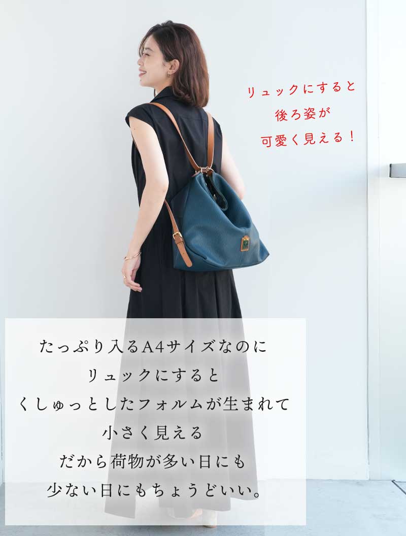 ■サイズ 横:約34cm 縦:約34cm 厚み:約12cm *サイズは外寸です *パソコンを入れる場合はインナーケースに入れることをお勧めいたします。(縦横31cm程度以内のインナーケースであれば入ります) *ショルダーベルトは3センチおきに5階調節可能です ■重さ 650g ■素材 外装:牛革(イタリア製撥水レザー)、ファーストクラスナイロン、ヌメ調牛革 内装:スウェード調の布帛 ■モデル身長:161cm |