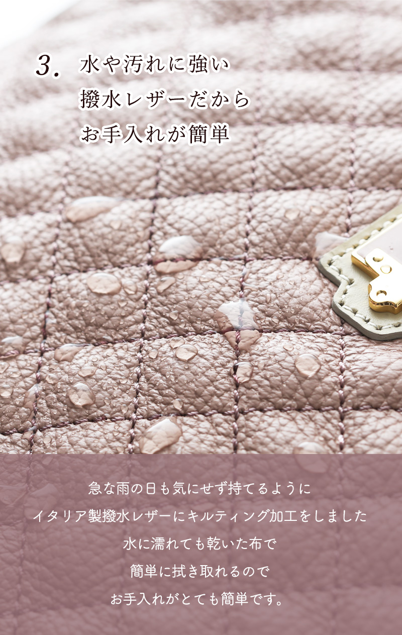 こちらのバッグはイタリアの撥水レザーを