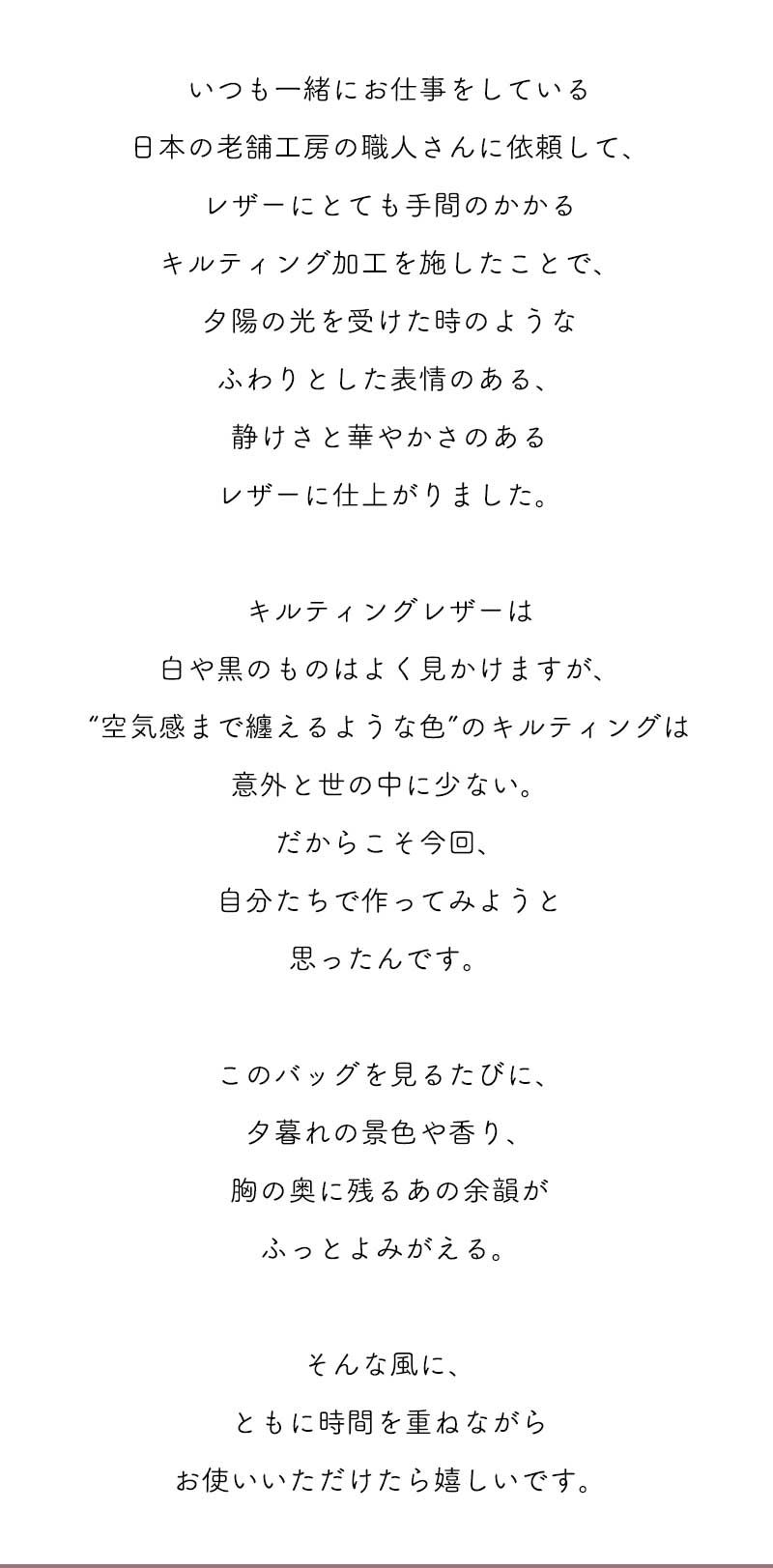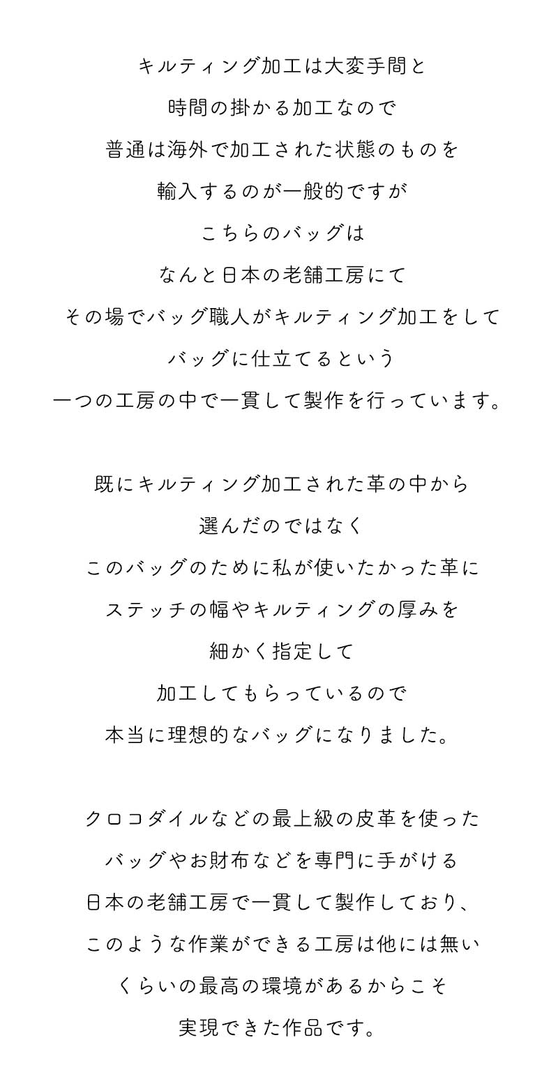 日本でキルティング加工しており、革の入荷が不定期となりますため、