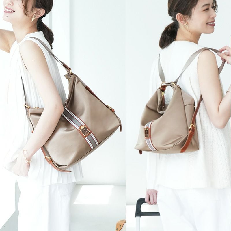 【HerSchedule】理想的な旅用「ファーストクラス」ナイロン 370gの軽量撥水リュック 0秒でトートにもリュックにもなるWork&Tripワークアンドトリップ チョコレートライン マイベストサイズ トリュフグレージュ(ハースケジュール)