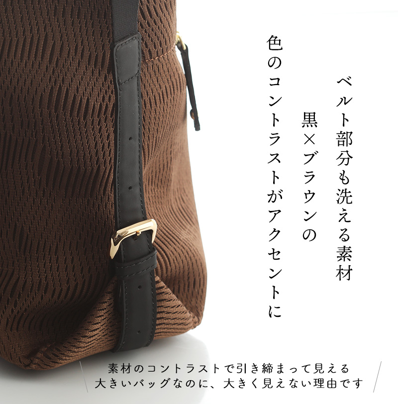■サイズ 横:約34cm 縦:約34cm 厚み:約12cm *パソコンを入れる場合はインナーケースに入れることをお勧めいたします。(縦横31cm程度以内のインナーケースであれば入ります) *ショルダーベルトは3センチおきに6階調節可能です *サイズは外寸です ■重さ 425g ■素材 外装:メッシュ、合成皮革、 内装:ナイロン メッシュ部分 ポリエステル100% 合成皮革部分 表面層-ポリエステル100%+基布-ナイロン60%/ポリウレタン40% ■モデル身長:161cm 立体商標登録済 |