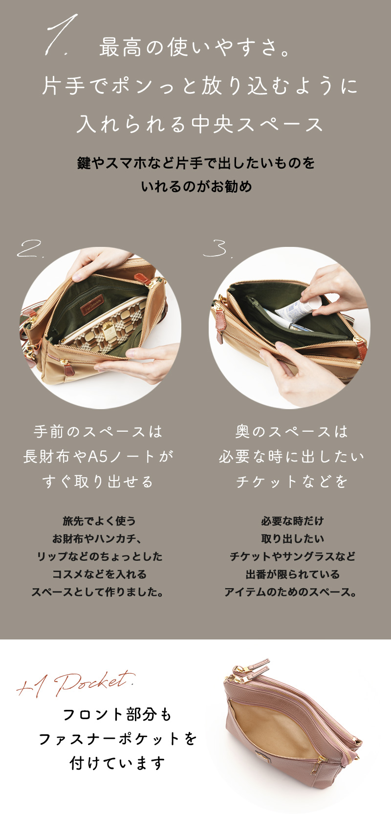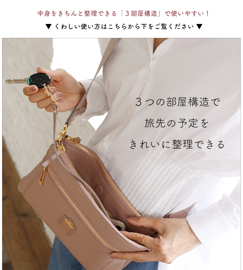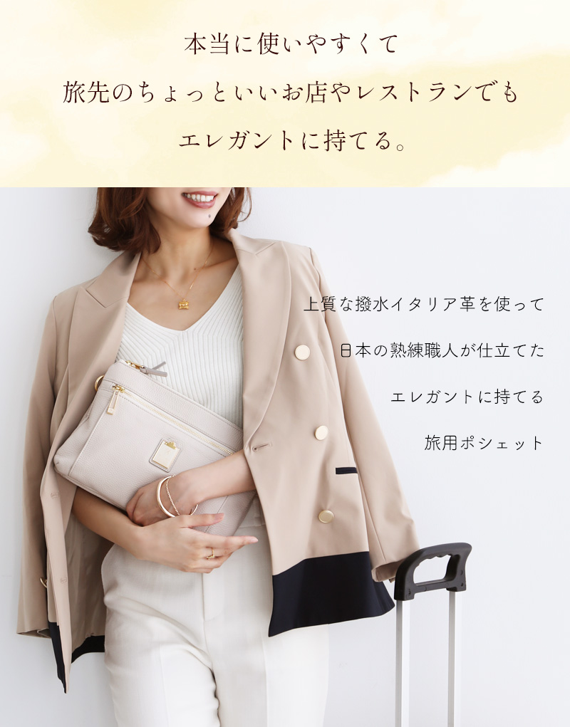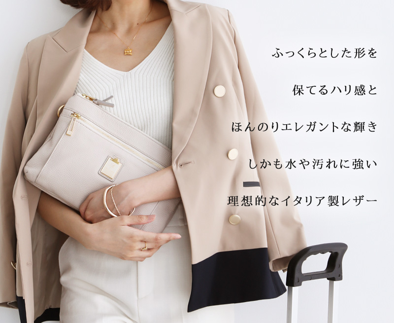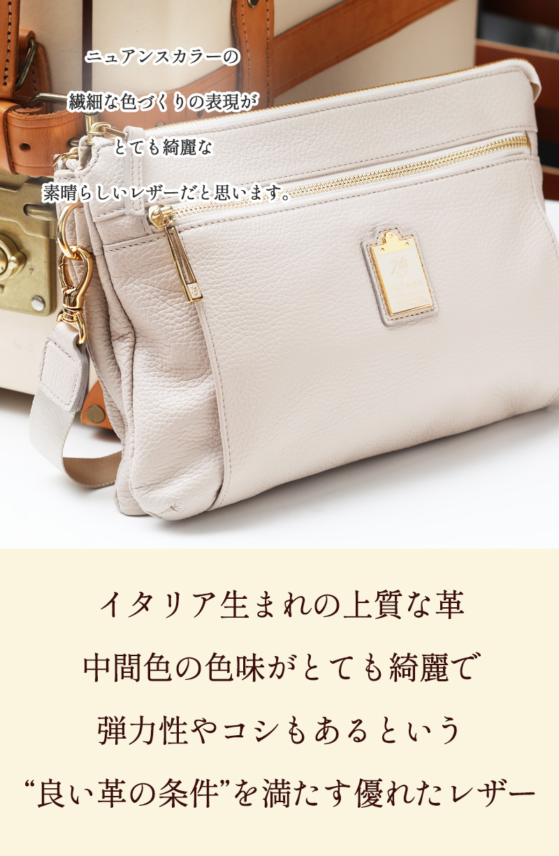 ■サイズ 横:約28cm 縦:約18.5cm 厚み:約3.5cm *ショルダーベルトの長さ:無段階調節可能 *サイズは外寸です ■重さ 530g ■素材 外装:撥水イタリア製牛革 内装:牛革 スウェード調の布帛 ■モデル身長:165cm |