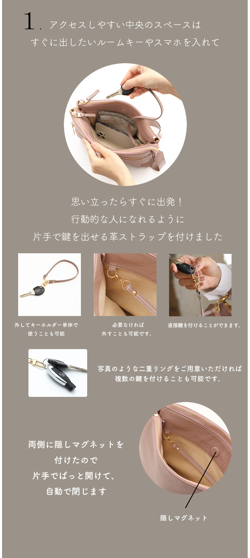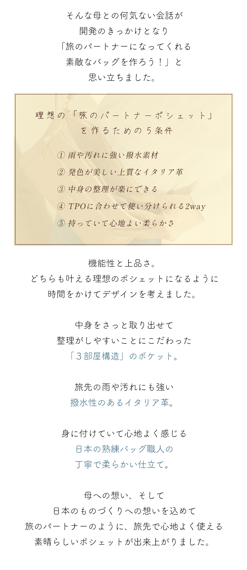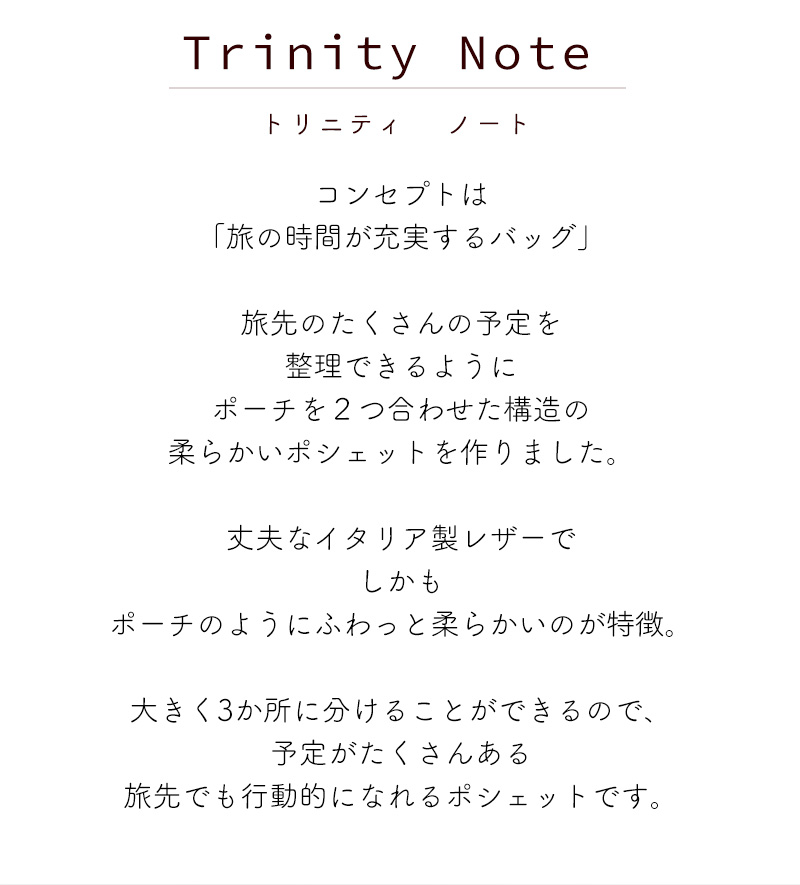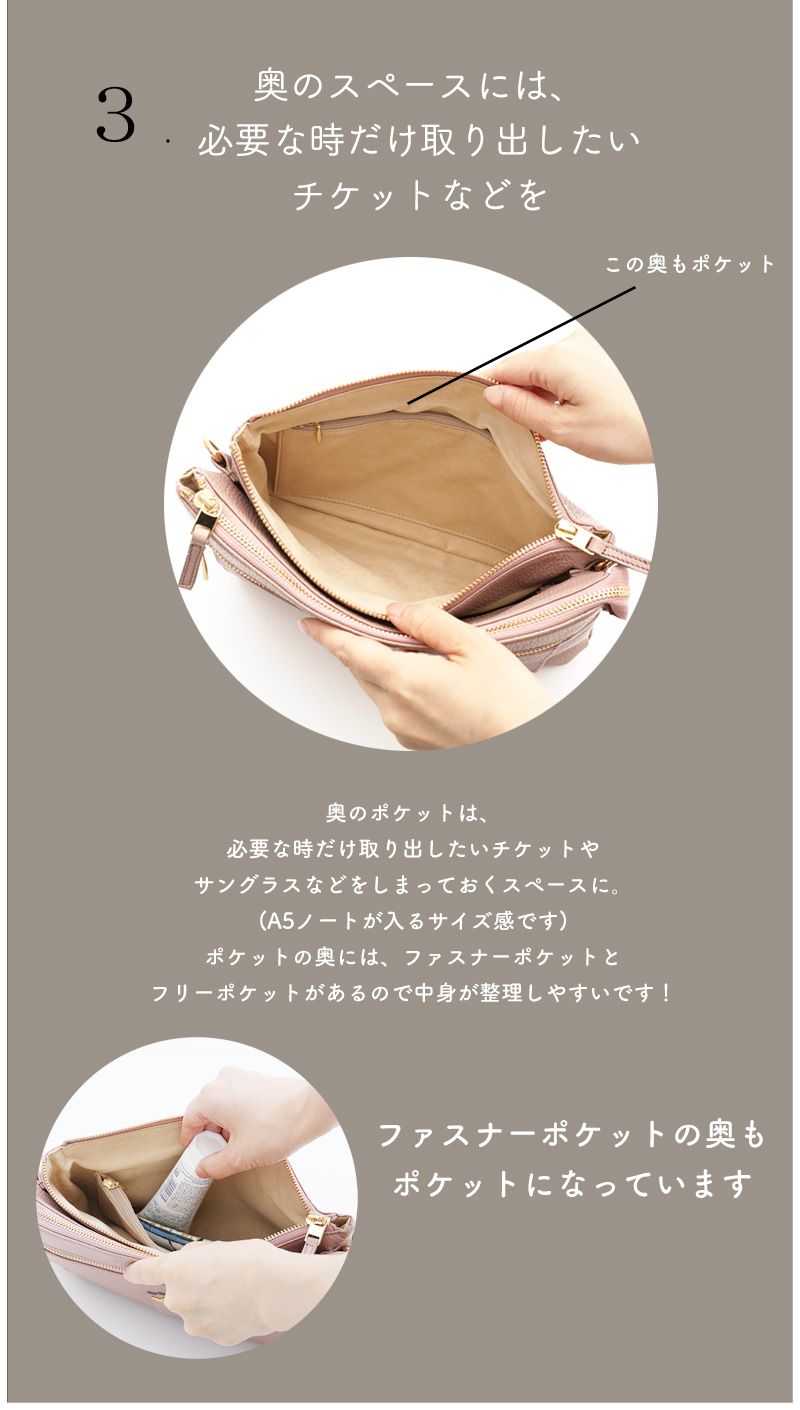 ■サイズ 横:約28cm 縦:約18.5cm 厚み:約3.5cm *ショルダーベルトの長さ:無段階調節可能 *サイズは外寸です ■重さ 530g ■素材 外装:撥水イタリア製牛革 内装:牛革 スウェード調の布帛 ■モデル身長:165cm |