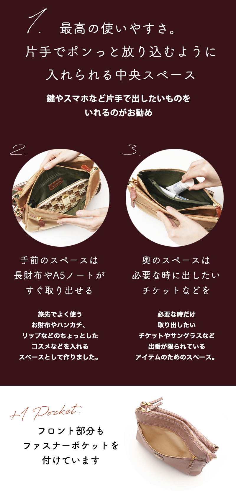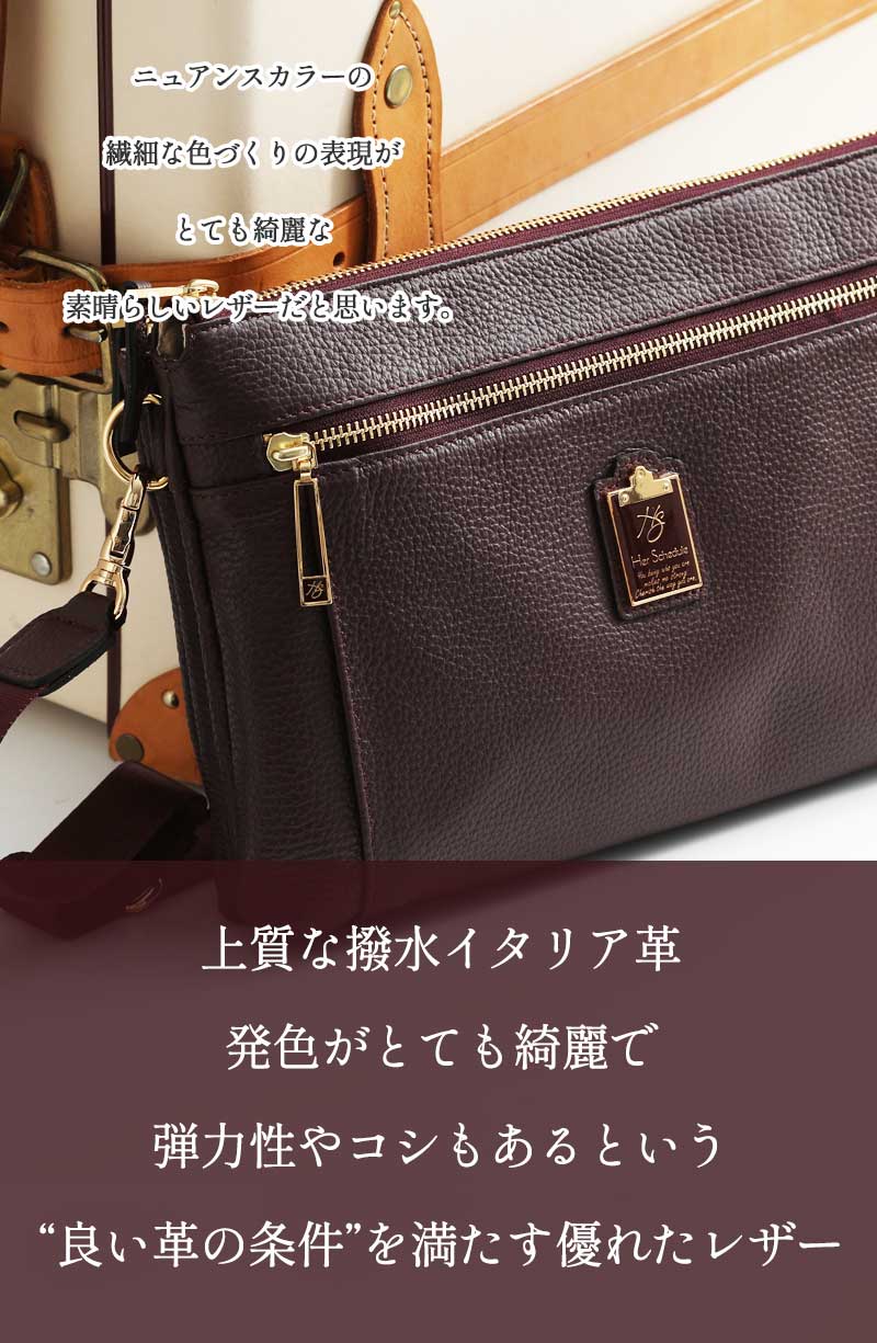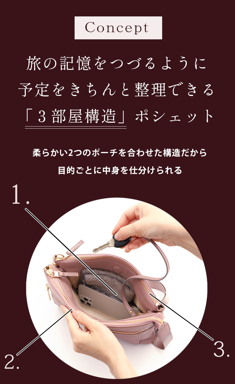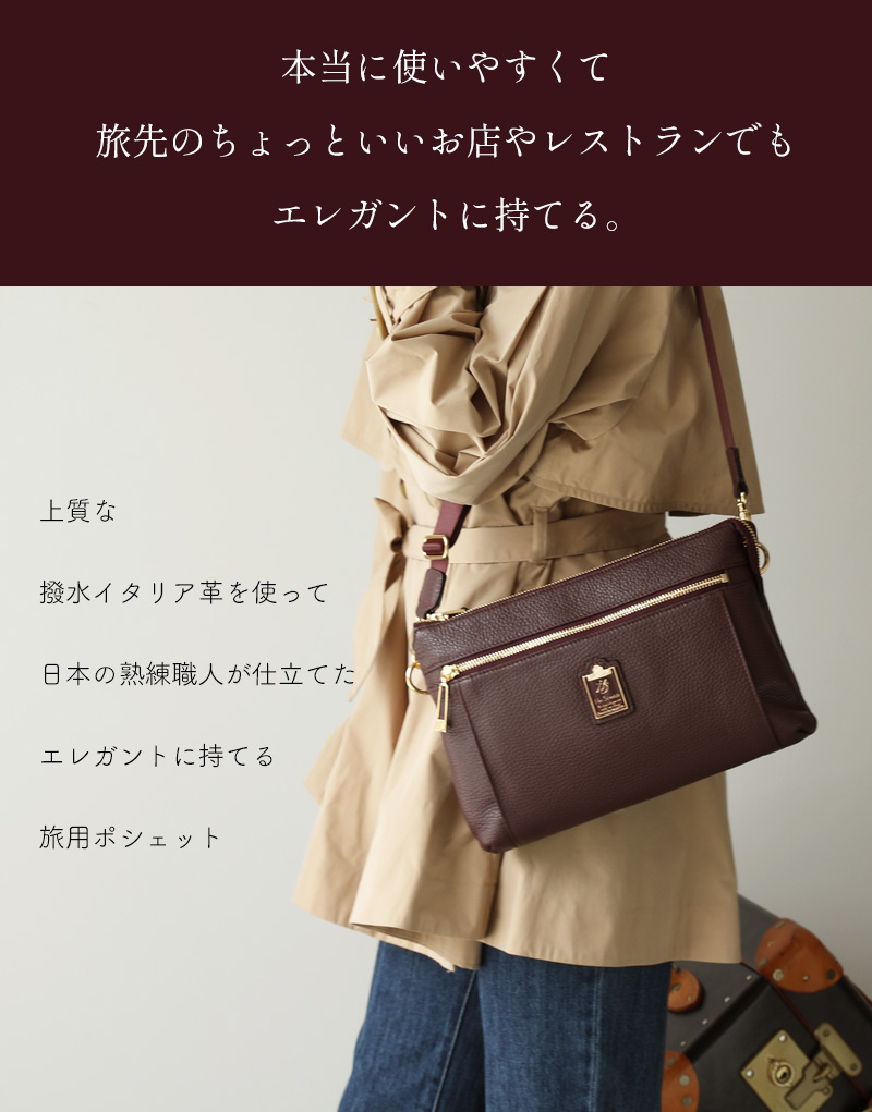【HerSchedule】旅好きな母のために作った「旅のパートナーポシェット」3部屋構造で驚くほど整理しやすい理想的な旅バッグ TrinityNote(トリニティノート)ショルダーバッグ 雨の日にも持てる汚れや水に強い撥水イタリア革 ワインショコラ(ハースケジュール)