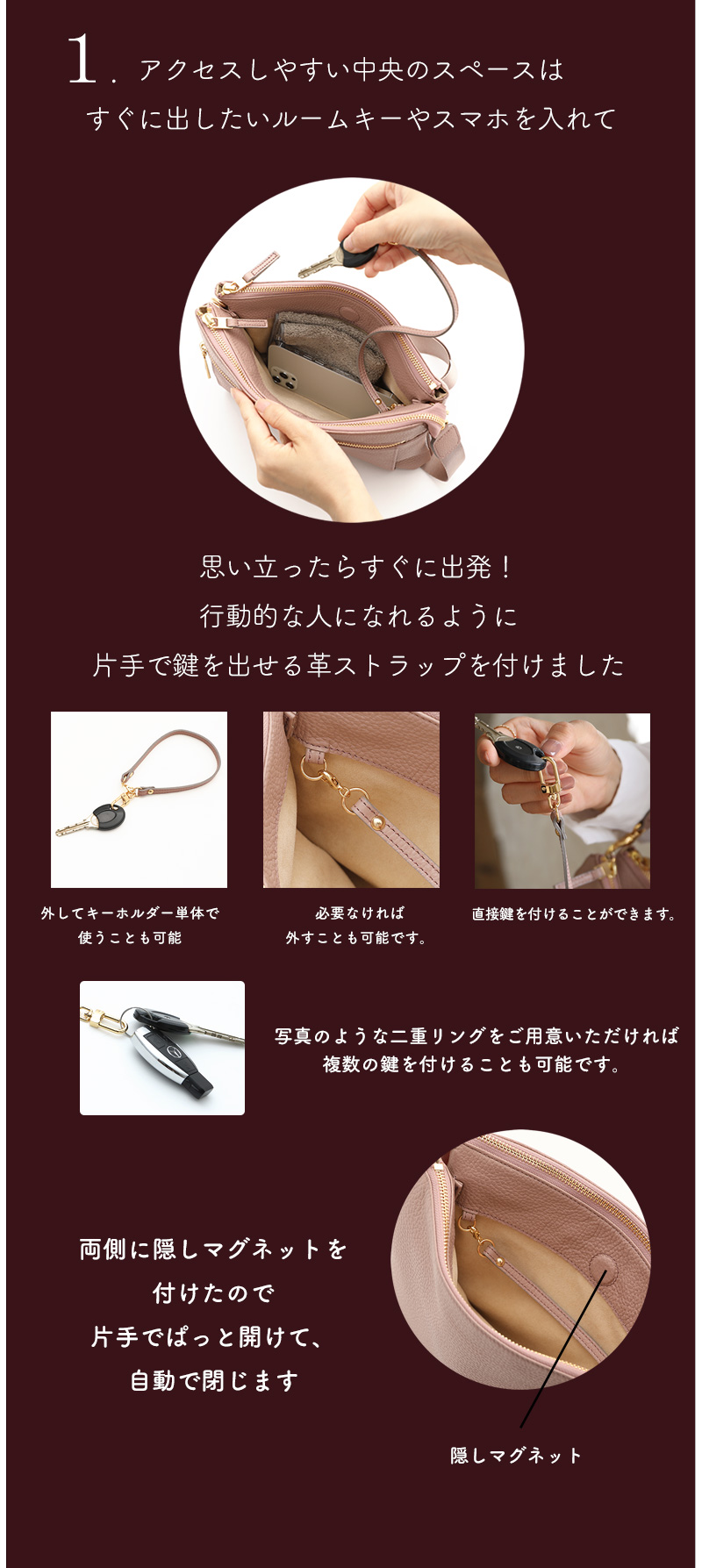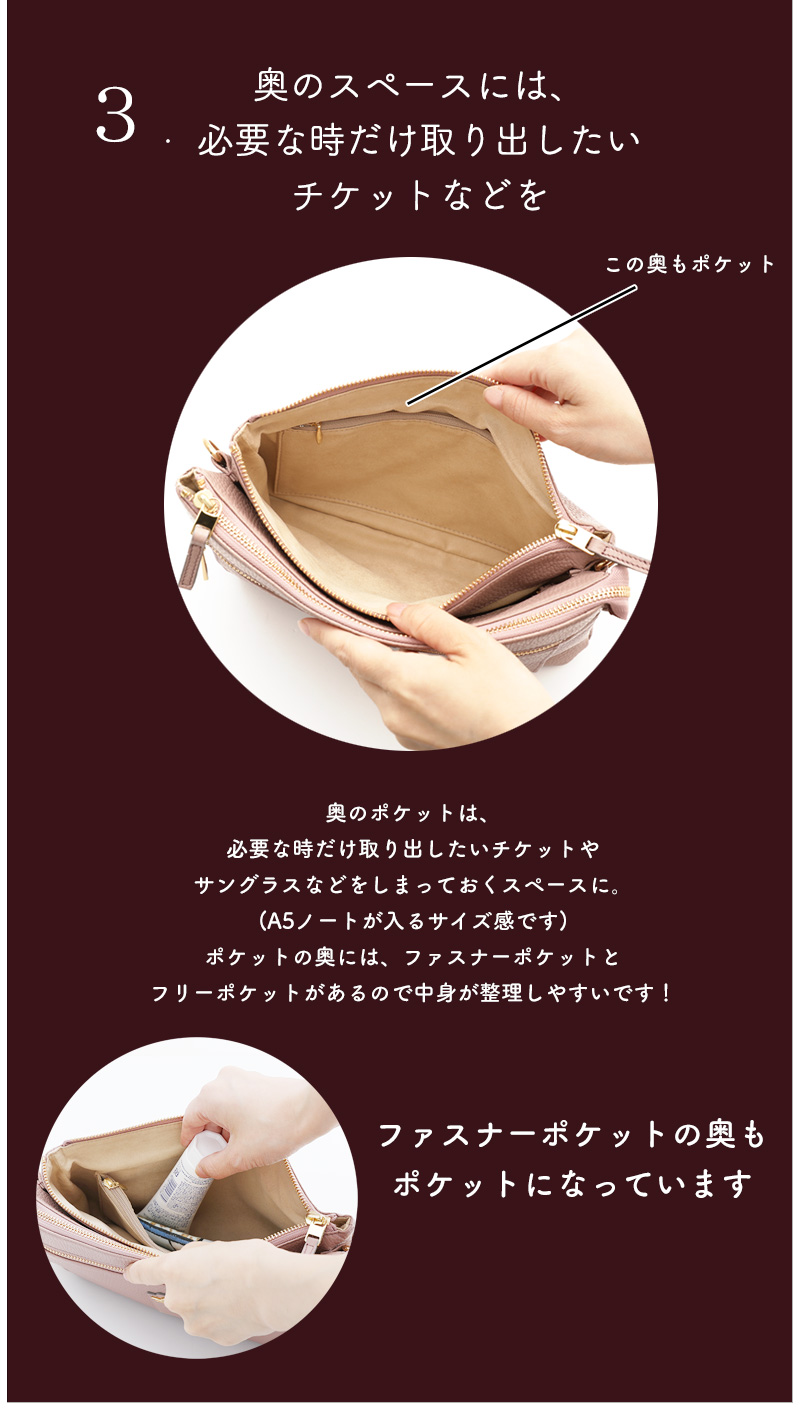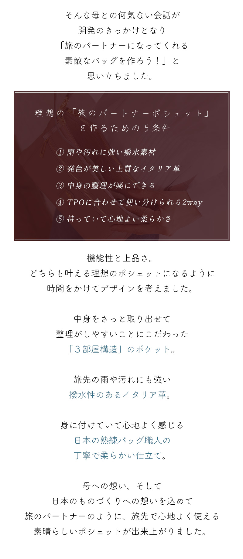 【HerSchedule】旅好きな母のために作った「旅のパートナーポシェット」3部屋構造で驚くほど整理しやすい理想的な旅バッグ TrinityNote(トリニティノート)ショルダーバッグ 雨の日にも持てる汚れや水に強い撥水イタリア革 ワインショコラ(ハースケジュール)