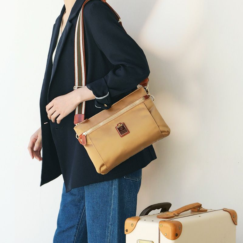 【HerSchedule】理想的な旅用「ファーストクラス」ナイロン 3つのポケット構造で、旅するみたいに人生が充実するショルダーバッグ TrinityNote(トリニティノート)チョコレートライン マロングラッセ(ハースケジュール)