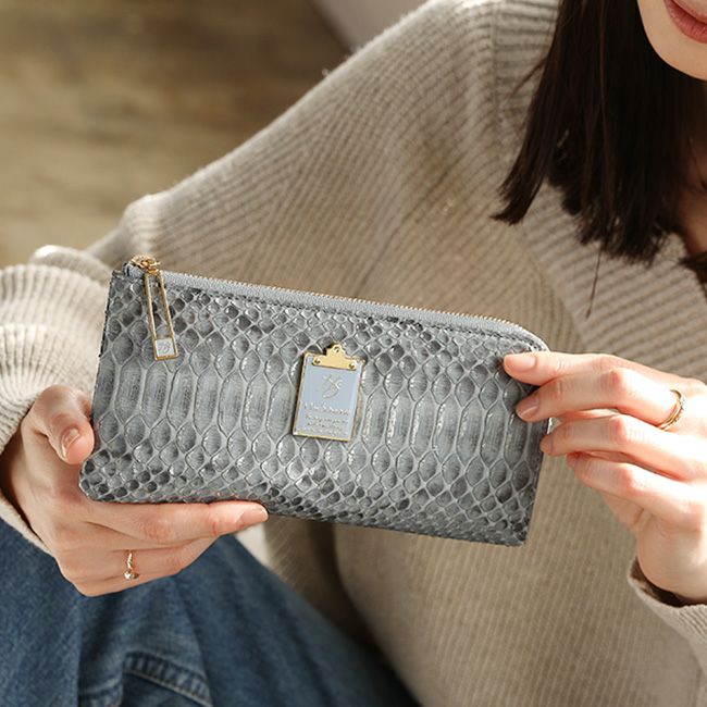 【HerSchedule】「王妃のドレスにも選ばれる妖精のようなニュアンスカラー」フェアリーブルー チェレットパイソン長財布 薄手のロングウォレット (ハースケジュール)
