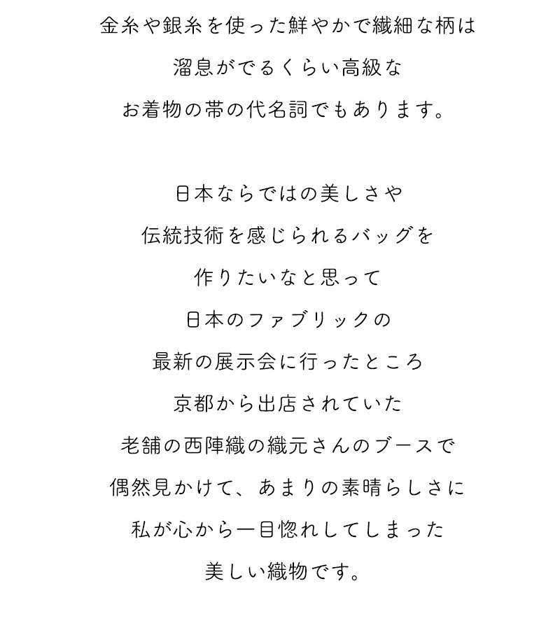 京都の織元にて製作される大変稀少な西陣織の生地を使っています