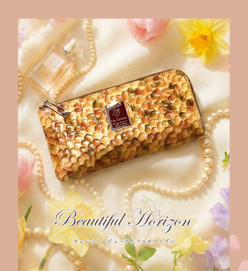 こちらのアイテムは、日本のエナメル革専門の職人が、3つのゴールド色を何度も何度も