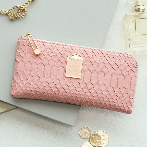 【HerSchedule】「少しスモーキーで、大人っぽい。初めてのパイソンウォレットにもオススメのニュアンスピンク」チェレットパイソン長財布 薄手のロングウォレット (ハースケジュール)