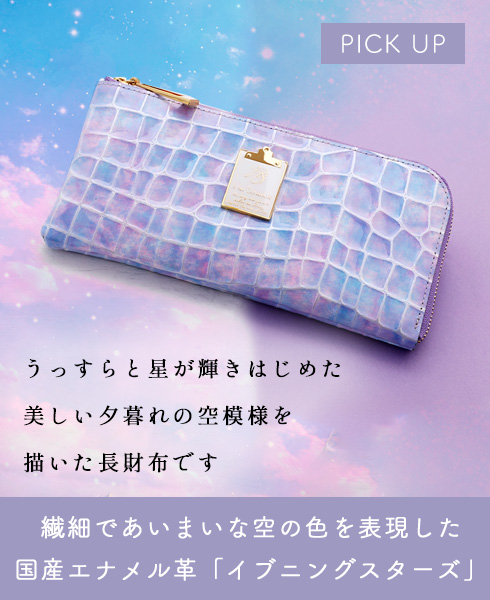 他の画像を見る Her Schelduleだけのオリジナル革 【HerSchedule】チェレットシリーズ 夕暮れの星空をイメージした特別なエナメルレザー evening stars(イブニングスターズ) 長財布 薄手のロングウォレット (ハースケジュール) 販売価格 ¥ 31,900 税込 販売期間 〜 2026/04/09 23:59 カートに入れる お気に入りに登録する