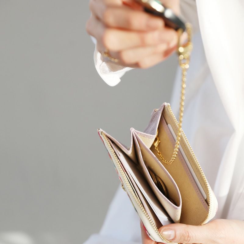 他の画像を見る Her Schelduleだけのオリジナル革 【HerSchedule】チェレットbillfold(二つ折りウォレット)シリーズ チェレット誕生記念スペシャルレザー「メモリアルパールエナメル」幸せ運ぶ、木漏れ日の花束「Green Bouquet(グリーンブーケ)」 二つ折りラウンドファスナーウォレット (ハースケジュール) 販売価格 ¥ 31,900 税込 販売期間 〜 2026/03/01 23:59 カートに入れる お気に入りに登録する