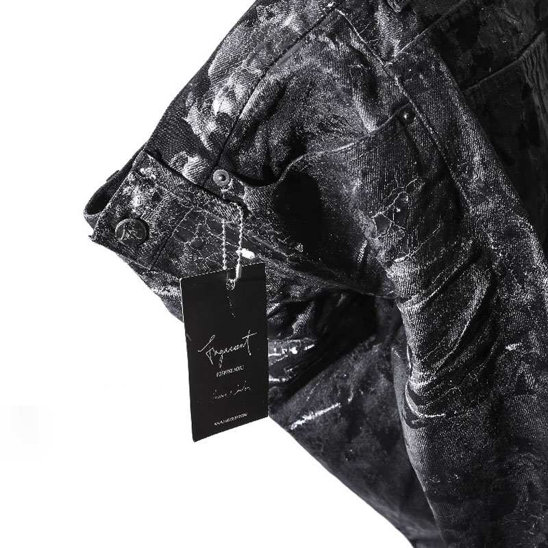 ペイントや退廃的な雰囲気をうまく捉えたダメージ加工と、ステージでの動きやすさを叶えるストレッチ感がポイント。。