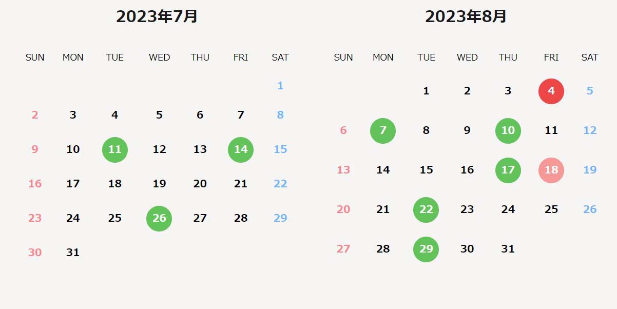 その中でも特におすすめな、一粒万倍日と天赦日をカレンダーにまとめました。